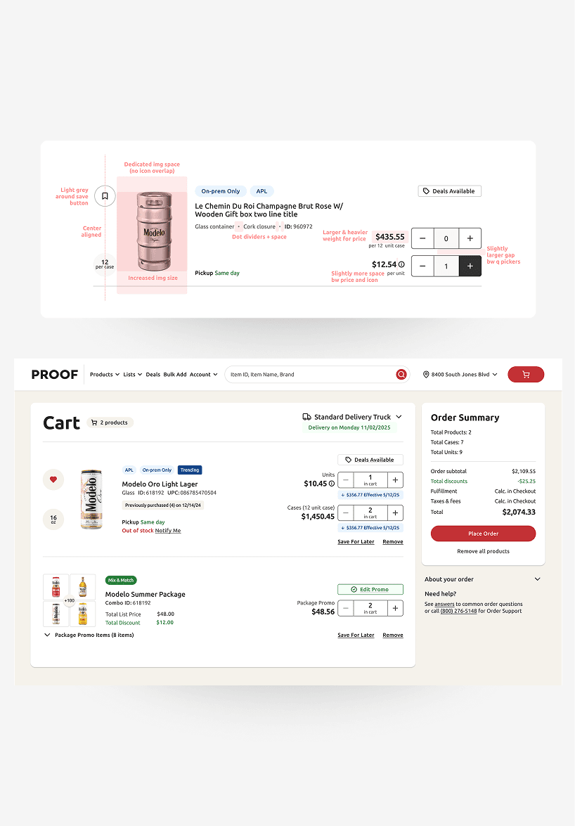Site-wide ux and ui design inconsistencies needed remediation which oftentimes stemmed from the Cart and Checkout. Legacy system operations, user habits, sales rep duties, and internal stakeholders all had to be considered.
