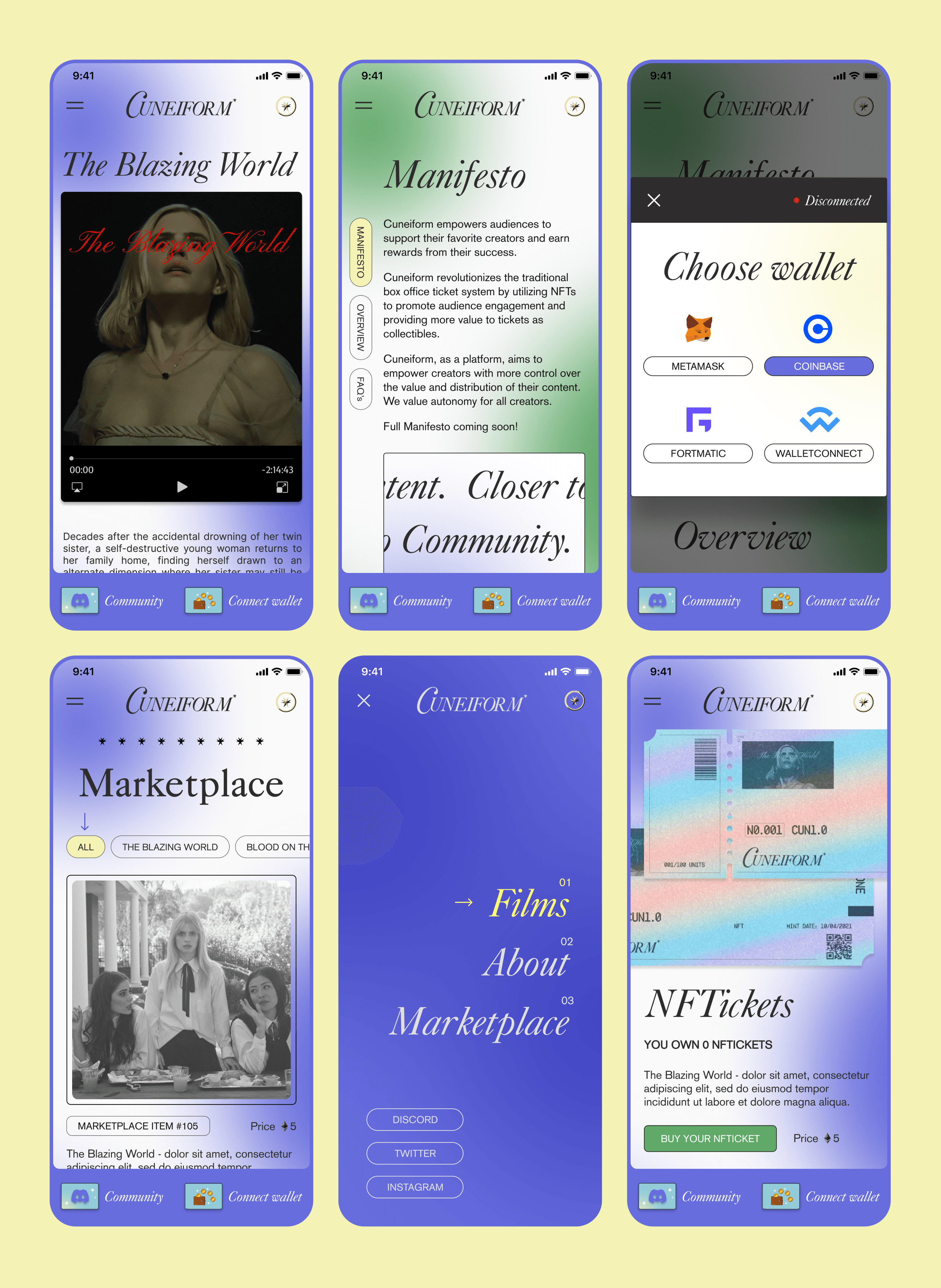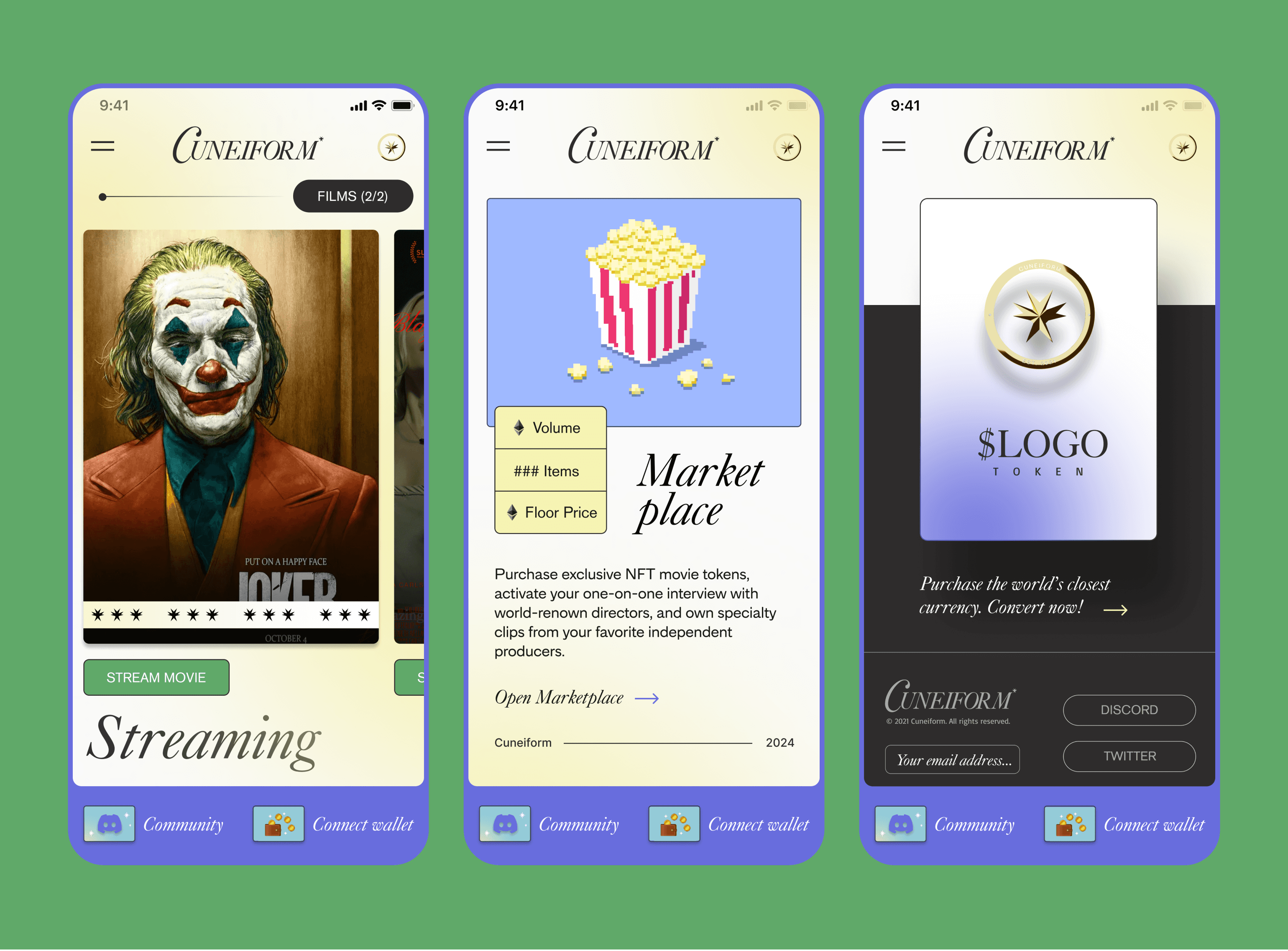 Owners can purchase one-of-a-kind NFT tickets that grant exclusive access to films. Utilizing the Ethereum blockchain platform, all assets are kept safe in a consumers personal digital wallet.