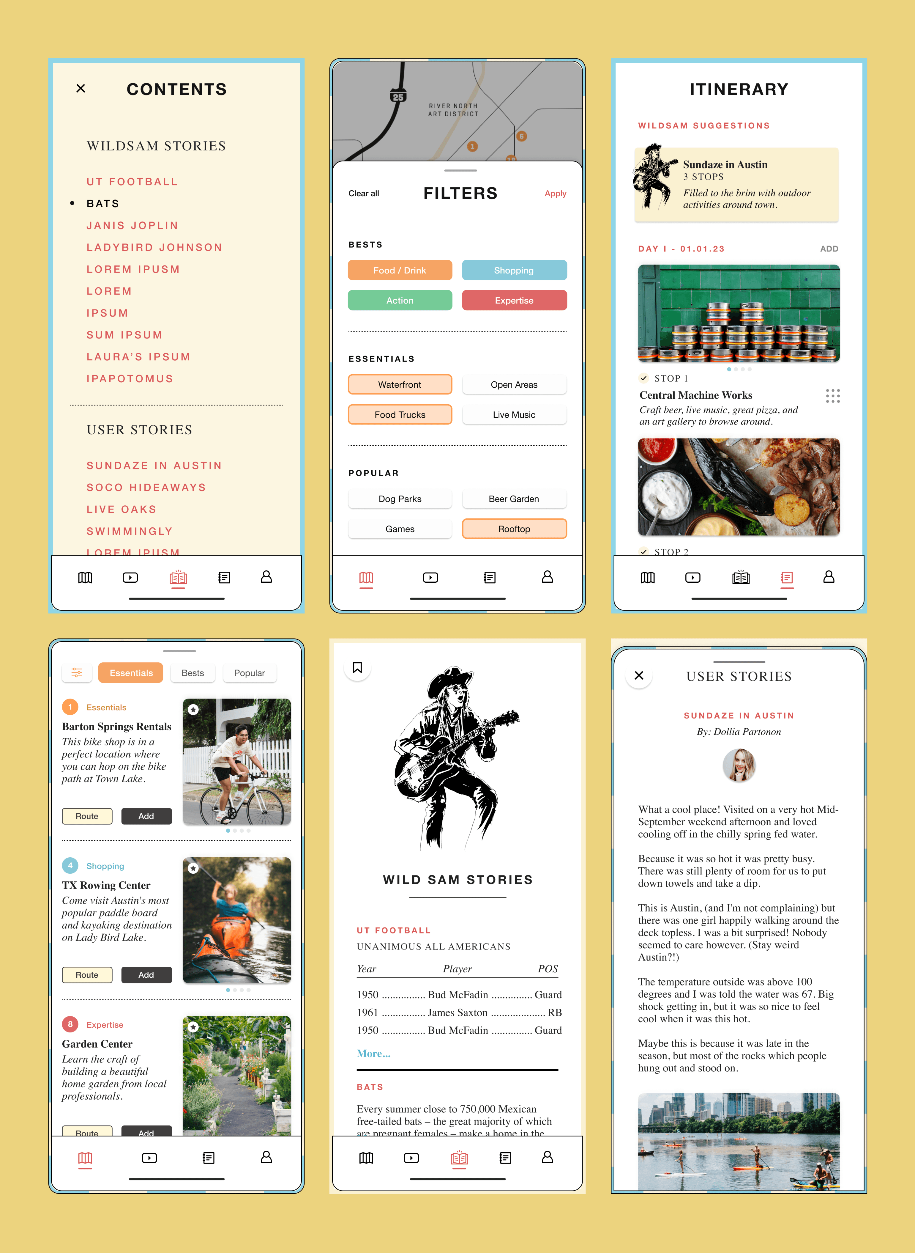 We took the pocket field guide and made it interactive. People could explore their favorite city's hidden gems with a tap. Filtering mechanisms made narrowing down selections easy, and the map feature showcased an open landscape with numbered dots on the map - each correlated to stops on an individual's hand-picked itinerary.